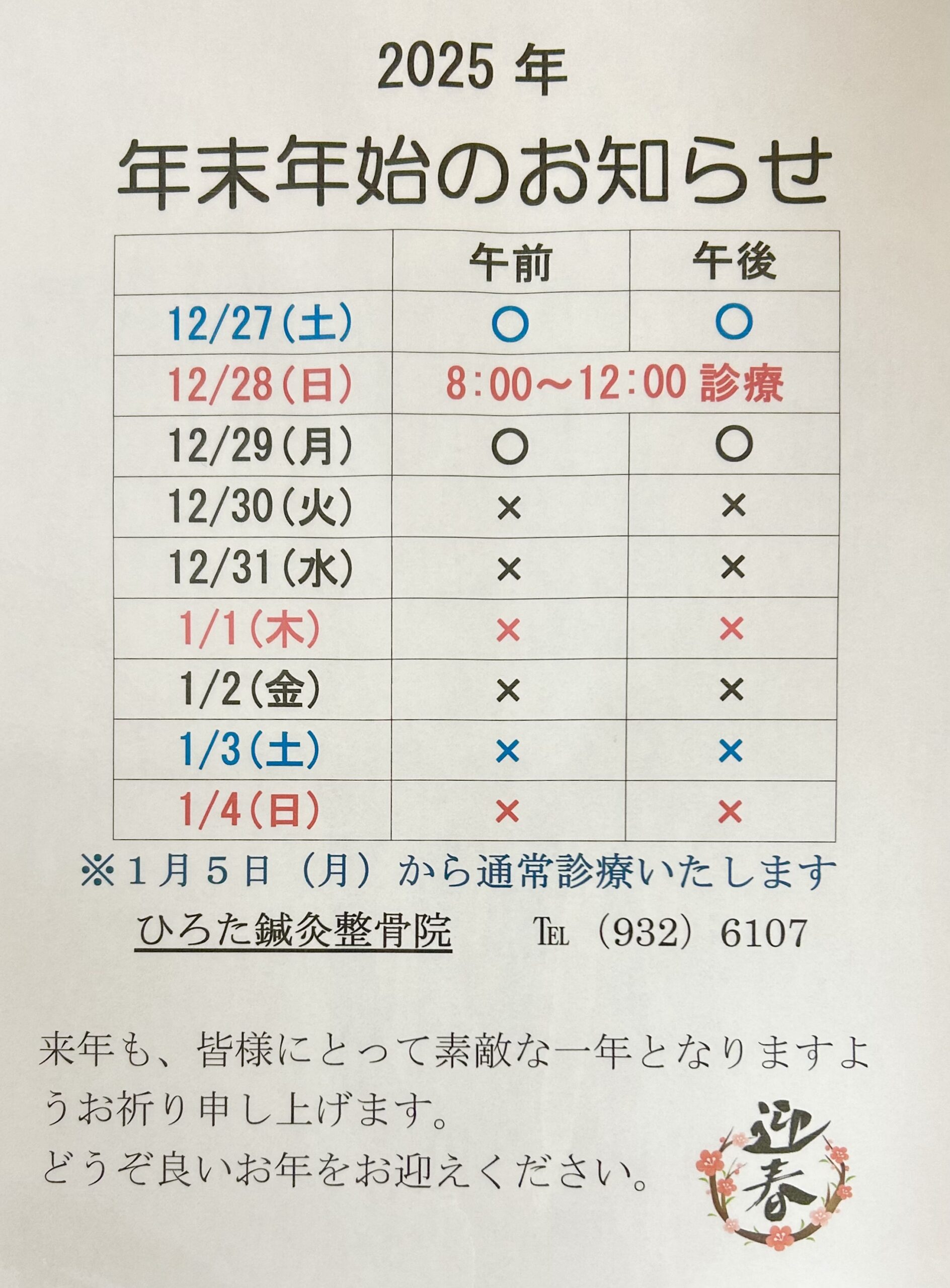 年末年始のお知らせ2025.11.19|